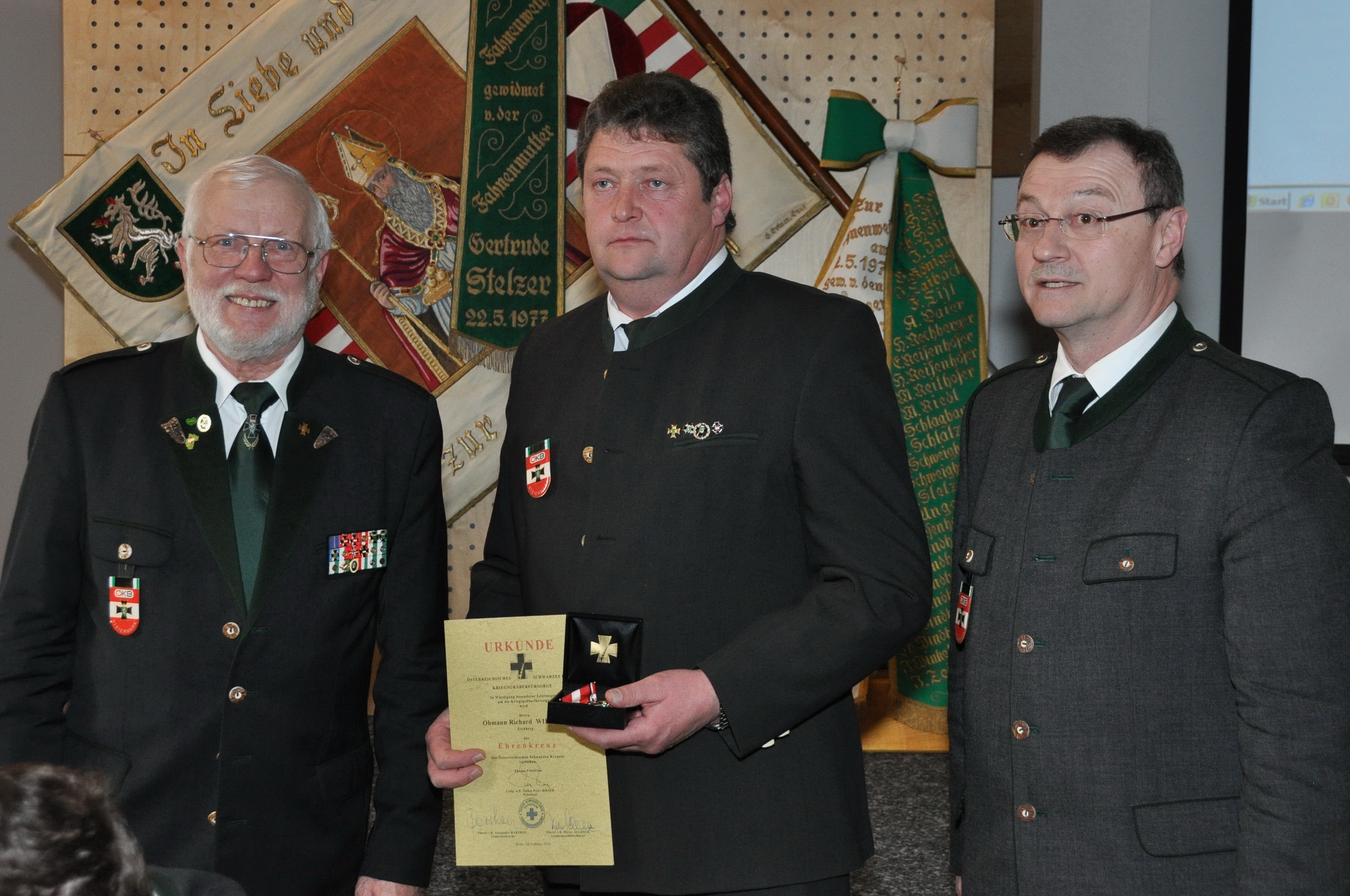 BOStv. Richard Wiedner wurde das vom Österr. Schwarzen Kreuz verliehene Ehrenkreuz überreicht. Die Vertreter der OV erhielten Auszeichnungen für die Mitgliederwerbung. Danach leitete Vz.Präs. Obstlt.a.D. Capt. Walter Fuchs, die auf Grund der Harmonisierung um ein Jahr vorgezogenen Neuwahlen des Bezirksvorstandes, der in der bisherigen personellen Zusammensetzung bestätigt wurde.