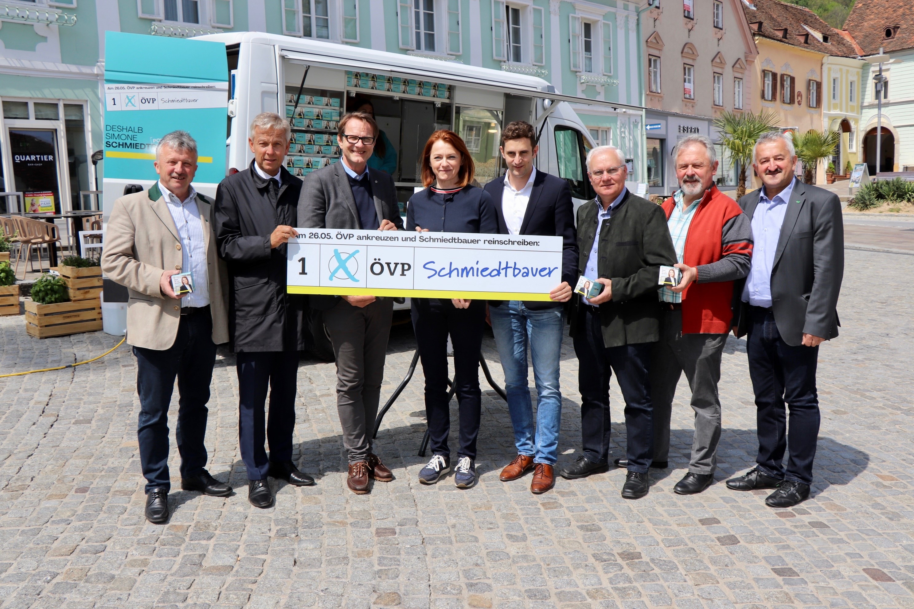 „Wir brauchen eine starke steirische Stimme in Europa, mit Simone Schmiedtbauer haben wir dafür die perfekte Kandidatin. Jetzt geht es nur mehr darum, sie mit einer Vorzugsstimme zu unterstützen“, brachte es ÖVP-Bezirksparteiobmann Abg.z.NR Reinhold Lopatka beim Bezirksbesuch der steirischen ÖVP-Kandidatin auf den Punkt. Begleitet wurde die ehemalige Bürgermeisterin der Gemeinde Hitzendorf unter anderem von LAbg. Hubert Lang, LAbg. Lukas Schnitzer, Kammerobmann Hans Reisinger und Bgm. Marcus Martschitsch und BGF Herbert Kogler.