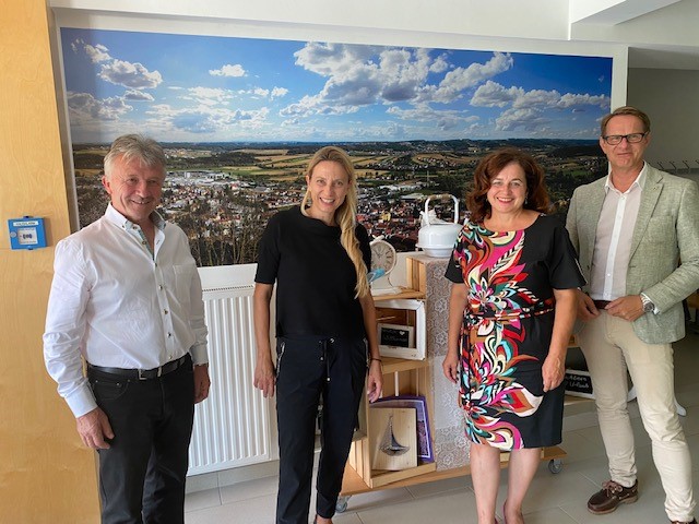 LAbg. Hubert Lang und Bgm. Gerald Maier bedankten sich bei LR Bogner-Strauß für die Unterstützung während der letzten Monate. Vom Hartberger Bgm. Marcus Martschitsch gab es zudem eine Wunschliste, unter anderem mit einem Ansuchen an den Bund bezüglich der Installierung eines HTL-Kollegs in Kooperation mit der HTL in Weiz. „Ein Wunsch, den ich gerne unterstütze“, so Bogner-Strauß. Am Programm standen außerdem der Besuch der Bildungsdirektion Oststeiermark, die in das ehemalige Vermessungsamt übersiedeln wird, und der Fachschule Hartberg-St. Martin, die ab Herbst die Ausbildung zur Pflegeassistenz anbietet.