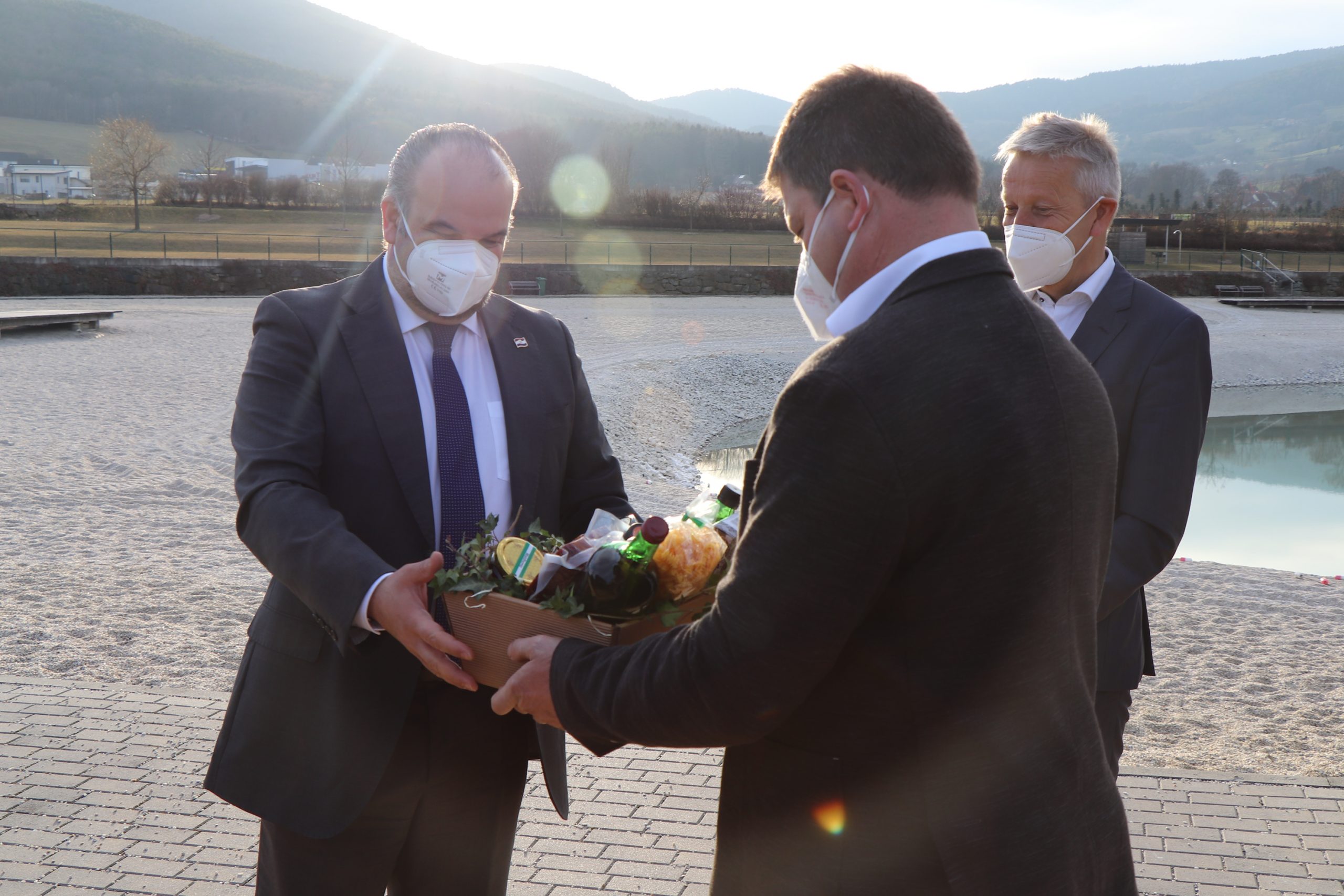 Der kroatische Botschafter in Österreich Daniel Glunčić war auf Einladung von Bgm. Matthias Kratzmann in Greinbach. Anlass war eine Koordinationssitzung der beiden Feuerwehren Penzendorf und der kroatischen Partnerfeuerwehr Donji Kraljevec. Stellvertretend für die österreichweit große Hilfsbereitschaft für die Opfer des Erdbebens in Kroatien im Dezember des Vorjahres, bedankte sich der Botschafter beim Hartberger Bereichsfeuerwehrkommandant LFR Bgm. Thomas Gruber und Kommandant der FF Penzendorf HBI Martin Gwandner sowie ihrer kroatischen Partnerfeuerwehr Donji Kraljevec. Im Zuge der Sitzung wurden auch weitere Hilfsgüter aus Greinbach nach Kroatien mitgenommen.