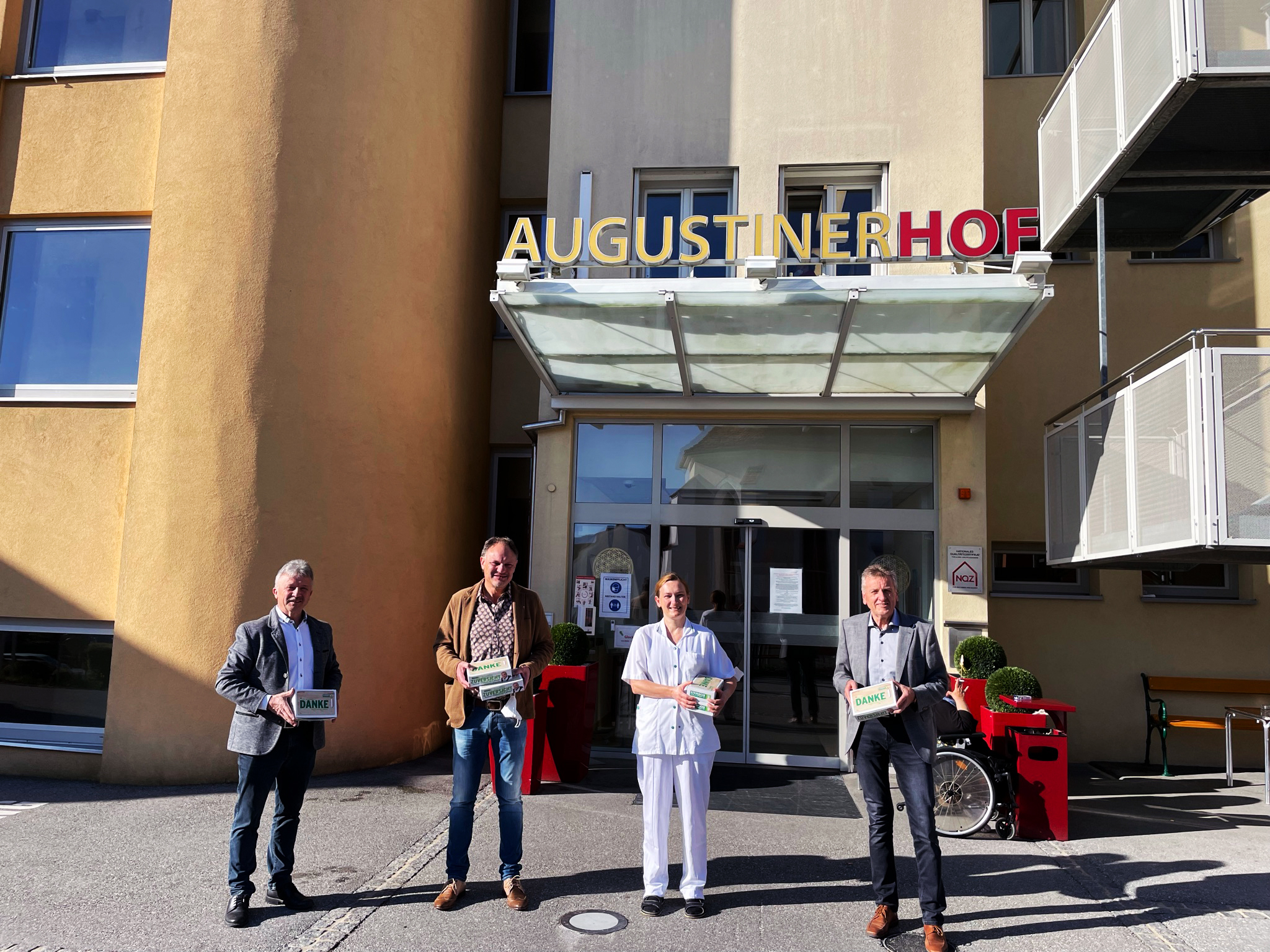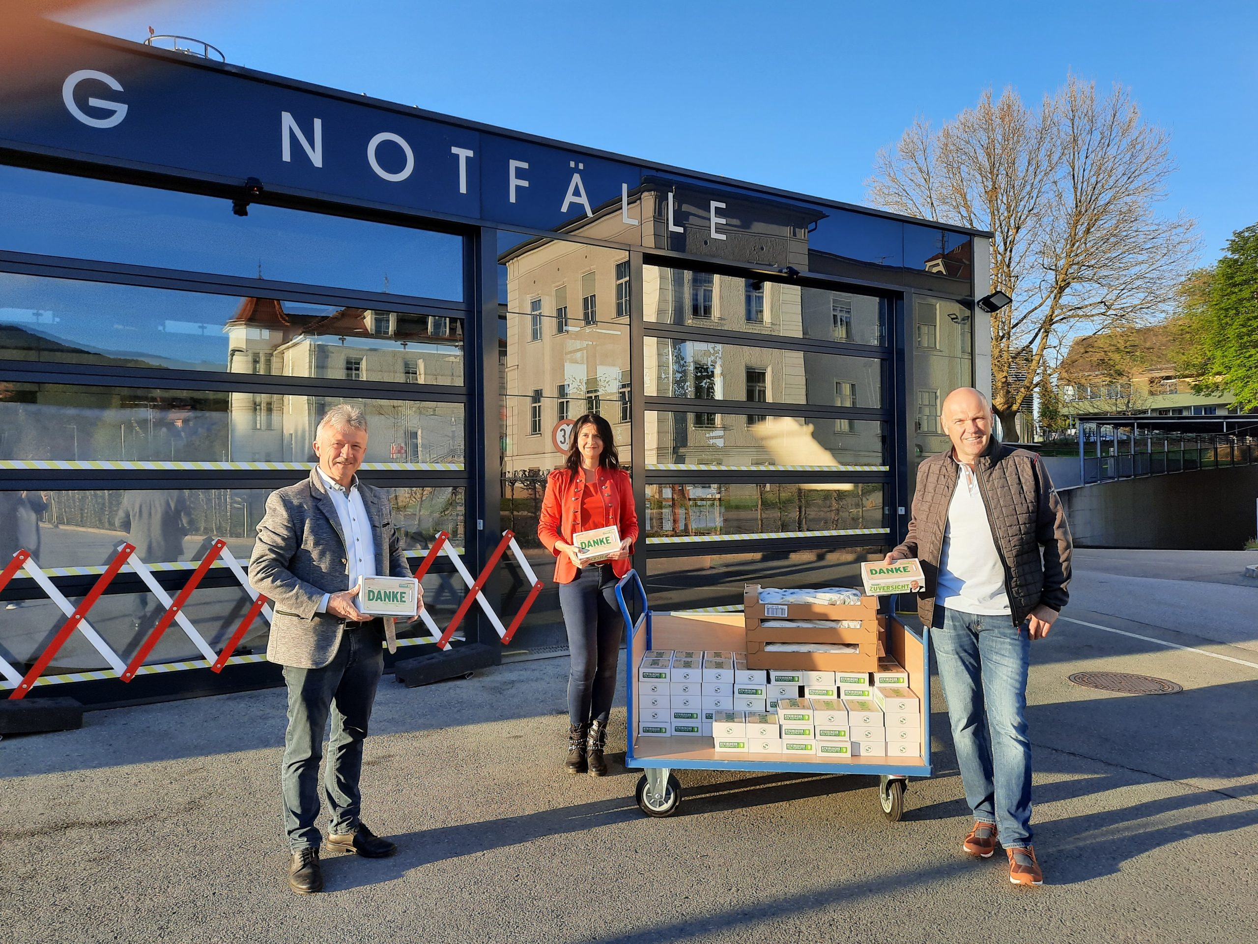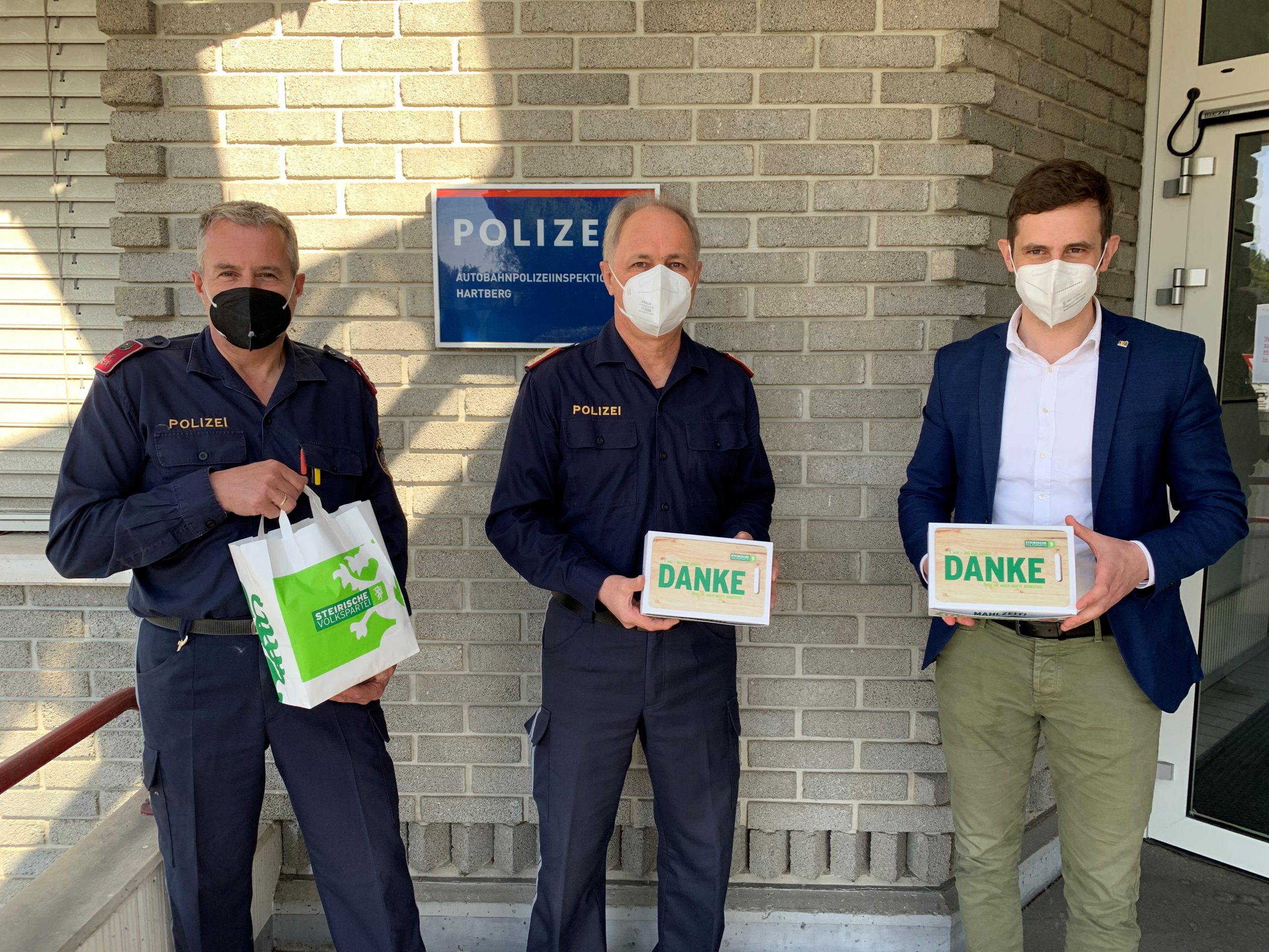 Im Bezirk Hartberg-Fürstenfeld war das Team der ÖVP rund um LAbg. Hubert Lang, LAbg. Vzbgm. Lukas Schnitzer und BGF Stephan Schneider unterwegs und besuchte Menschen die auch an diesem Tag arbeiten, um die Sicherheit und Infrastruktur aufrecht zu erhalten bzw. im Pflege- und Gesundheitsdienst Unverzichtbares leisten. Als kleines Dankeschön wurden Frühstückssackerl und steirische Brettjausen im Seniorenwohnhaus Menda Hartberg, Wohnheim Augustinerhof Fürstenfeld, LKH Hartberg und Fürstenfeld, im Marienkrankenhaus Vorau, den Polizeidienststellen des Bezirkes und in den Dienststellen des Roten Kreuzes verteilt.