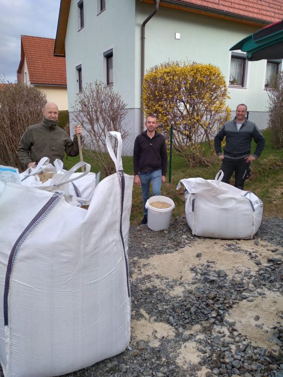 Im Zeitraum von zweieinhalb Wochen wurden rund 90 Haushalte gratis mit Spielsand versorgt. Dabei hatten die Zusteller – ÖAAB Obmann GK Andreas Geier, ÖAAB Kassier GR Roman Riegler und ÖAAB Obmann-Stv. Gerhard Kaiser – alle Hände voll zu tun, denn es wurden insgesamt ca. 11.000 kg Sand verteilt.