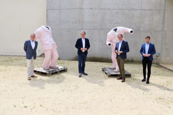 Der Steirische Kulturlandesrat Christopher Drexler besuchte die Erwin Wurm-Ausstellung im Museum Hartberg. Begleitet wurde er von Bgm. Marcus Martschitsch, Vzbgm. LAbg. Lukas Schnitzer und vom Obmann des Historischen Vereins Reinhold Glehr. Nach der Besichtigung der Werkschau war Drexler begeistert: „Erwin Wurm zählt zu den renommiertesten Künstlern weltweit. Ich gratuliere der Stadt Hartberg und danke Bgm. Martschitsch, dass eine Ausstellung dieser Qualität in der Oststeiermark zu sehen ist.“ Mit weit über 2.000 Besuchern ist die Wurm-Schau die bisher erfolgreichste Ausstellung im Museum Hartberg.