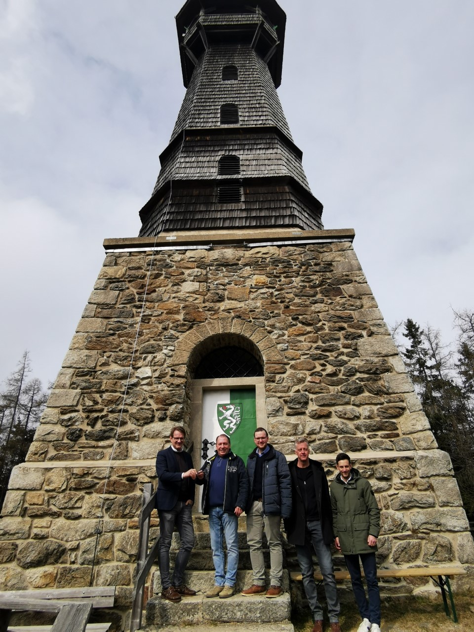 Sie ist beliebstes Ausflugsziel und das Hartberger Wahrzeichen – die Ringwarte. Am 1. April öffnet sie wieder ihre Pforte. Das Rastplatzl bei der Ringwarte wird von einem neuen Pächter geführt. Andreas Ikerna bietet diverse Jausen- und Getränkespezialitäten, wie belegte Brote und Würstel sowie alkoholfreie und alkoholische Durstlöscher. Geöffnet haben die Ringwarte und die Jausenstation jeweils Mittwoch bis Sonntag ab 10 Uhr. Offiziell willkommen geheißen wurde Andreas Ikerna von Bgm. Marcus Martschitsch, Vzbgm. LAbg. Lukas Schnitzer, Ortsvorsteher GR Joachim Kummer und dem Leiter des Stadtbauamtes Manfried Schuller. Kinder und Familien können sich auf neue Attraktionen freuen. Die Mitarbeiter von Hartberg Services errichten eine Spieleturm-Kombination mit Hängeseilbrücke und eine elf Meter lange Hangrutsche.