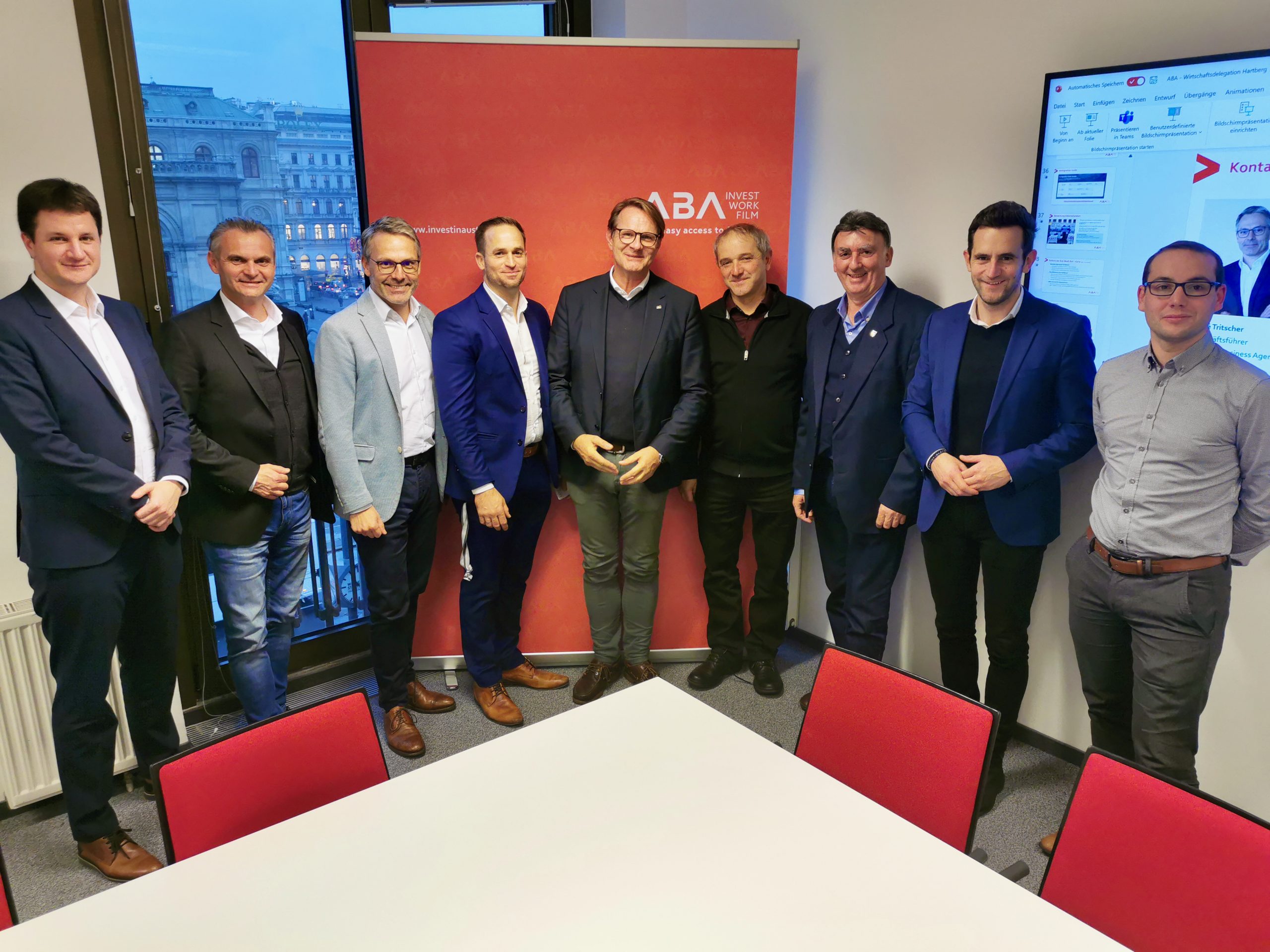 Darüber hinaus wurden die Gewerbestandorte der fünf Gemeinden der Wirtschaftsregion bei der ABA, der Austrian Business Agency vorgestellt. Wenn es um Investitionen aus dem Ausland geht, die sich dann im Idealfall für den Standort Wirtschaftsregion Hartberg entscheiden, ist die ABA die erste Anlaufstelle in Österreich. Bei einem Erfahrungsaustausch mit Wirtschaftsbund-Generalsekretär Österreich, Abg.z.NR Kurt Egger standen die Themen Energieversorgung und Arbeitskräfteverfügbarkeit im Focus.