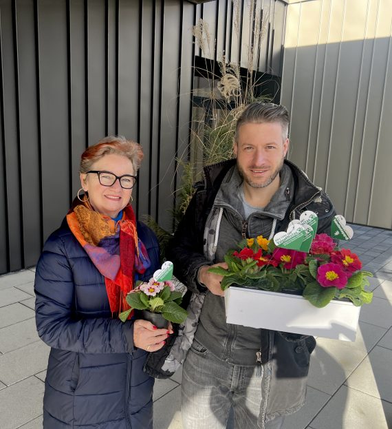 Der Fürstenfelder Bürgermeister Franz Jost und Bürgermeisterin Andrea Kohl aus Bad Blumau nutzten den Valentinstag für eine kleine Verteilaktion von regional gekauften Blumengrüßen in ihren Gemeinden.