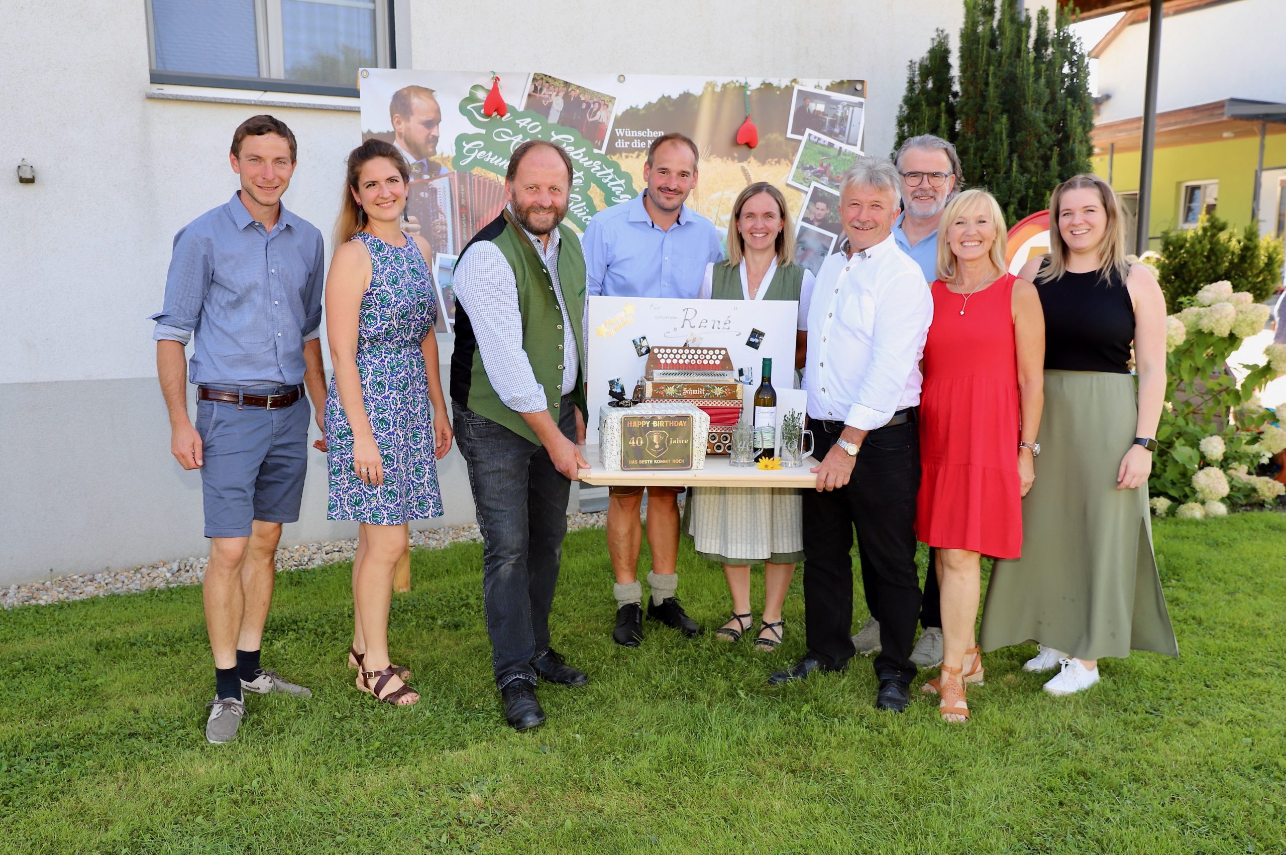 In seinem landwirtschaftlichen Betrieb in Unterdombach, Gemeinde Buch-St. Magdalena, feierte Bezirksbauernbundobmann-Stellvertreter und Bezirkskammerrat René Nöhrer seinen 40. Geburtstag mit zahlreichen Nachbarn, Freunden und Wegbegleitern.