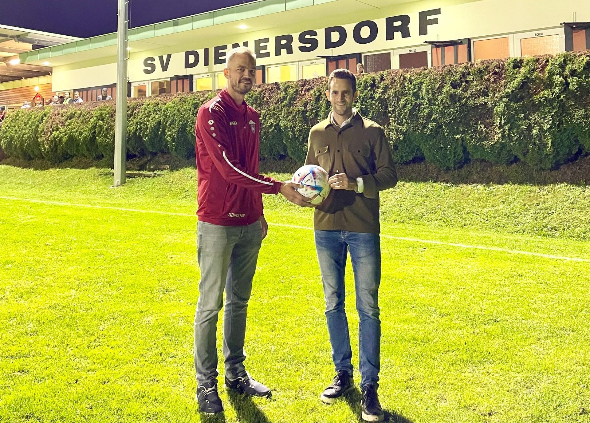 Zu den ersten Vereinen, die sich über einen neuen Matchball freuen durften, zählte der USV Dienersdorf. Unmittelbar nach dem Start in die neue Saison der Liga 1. Klasse Ost A, die mit einem Heimspiel gegen den USC Vornholz erfolgte, übergab ÖVP-Bezirksparteiobmann LAbg. Lukas Schnitzer den Adidas WM-Ball an Obmann Manfred Loidl.