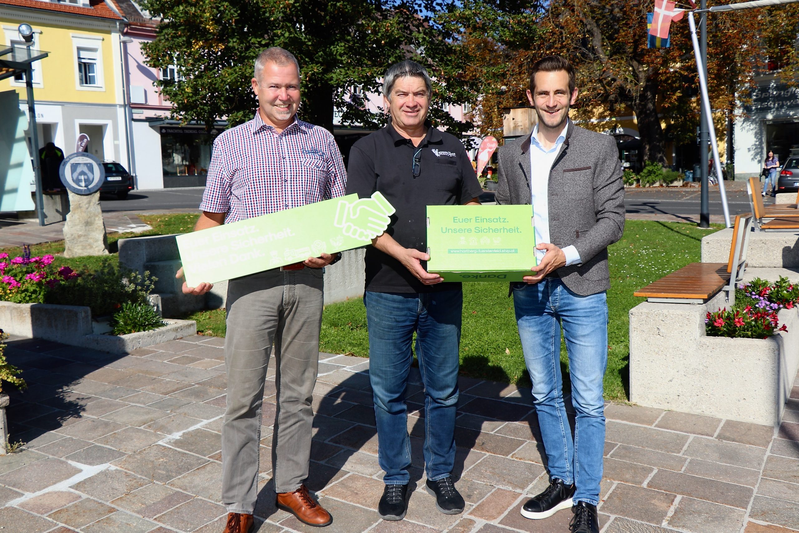 Vor wenigen Tagen nahm der Obmann des ÖKB-Stadtverbandes Friedberg Roland Gressenbauer von Bezirksparteiobmann LAbg. Lukas Schnitzer und Stadtparteiobmann Finanzstadtrat Michael Krammer eine „kulinarische Kraftspendebox“ mit regionalen Spezialitäten in Empfang. „Ein kleines Zeichen des Dankes und der Anerkennung für die vielfältigen Aktivitäten der ÖKB-Mitglieder, die der Sicherheit und dem Schutz unseres Heimatlandes dienen“, so LAbg. Schnitzer bei der Übergabe.
