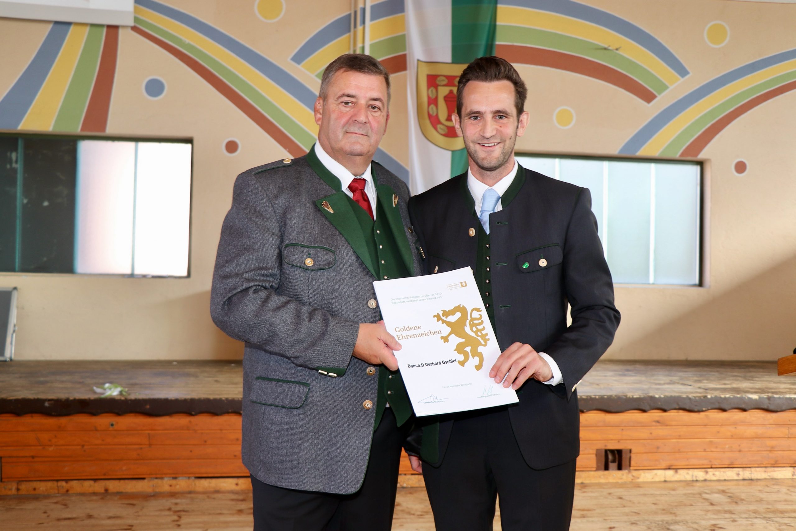 In der bis auf den letzten Platz gefüllten Freizeithalle wurde Bgm. a.D. Gerhard Gschiel vom neuen Bürgermeister die Ehrenbürgerurkunde und der Ehrenring der Gemeinde Buch-St. Magdalena überreicht. Unter den ersten Gratulanten war Bezirksparteiobmann LAbg. Lukas Schnitzer, der sich als Zeichen des Dankes und der Anerkennung mit dem Goldenen Ehrenzeichen der Steirischen Volkspartei einstellte. Bgm. a.D. Gschiel will sich der sich künftig vor allem seiner Familie, allen voran den vier Enkelkindern, und seinem Hobby, dem Golfsport, widmen.