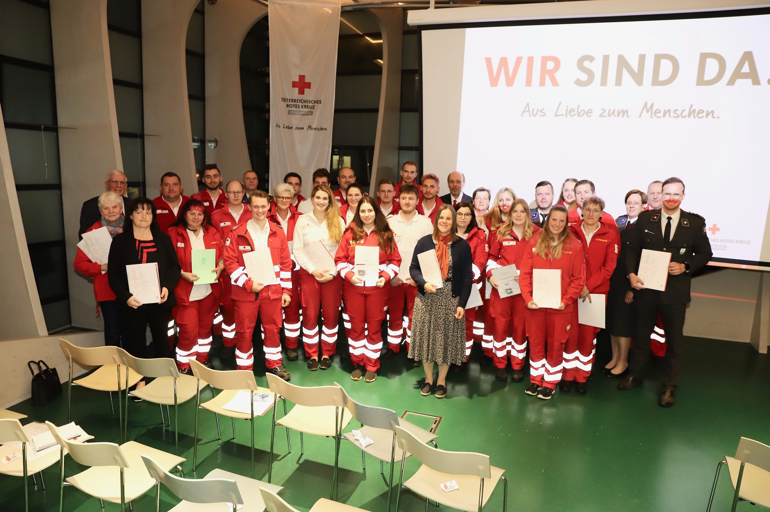 Die Versammlung war passender Rahmen, um zahlreiche Mitarbeiterinnen und Mitarbeiter des Roten Kreuzes zu befördern bzw. für ihre Leistungen zu ehren: