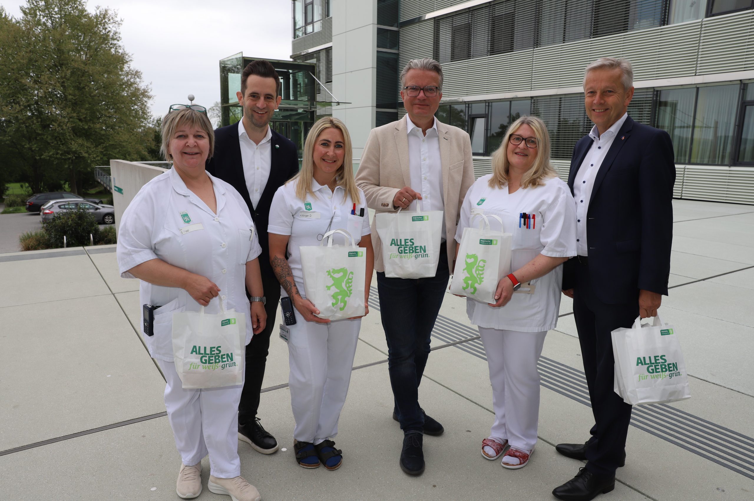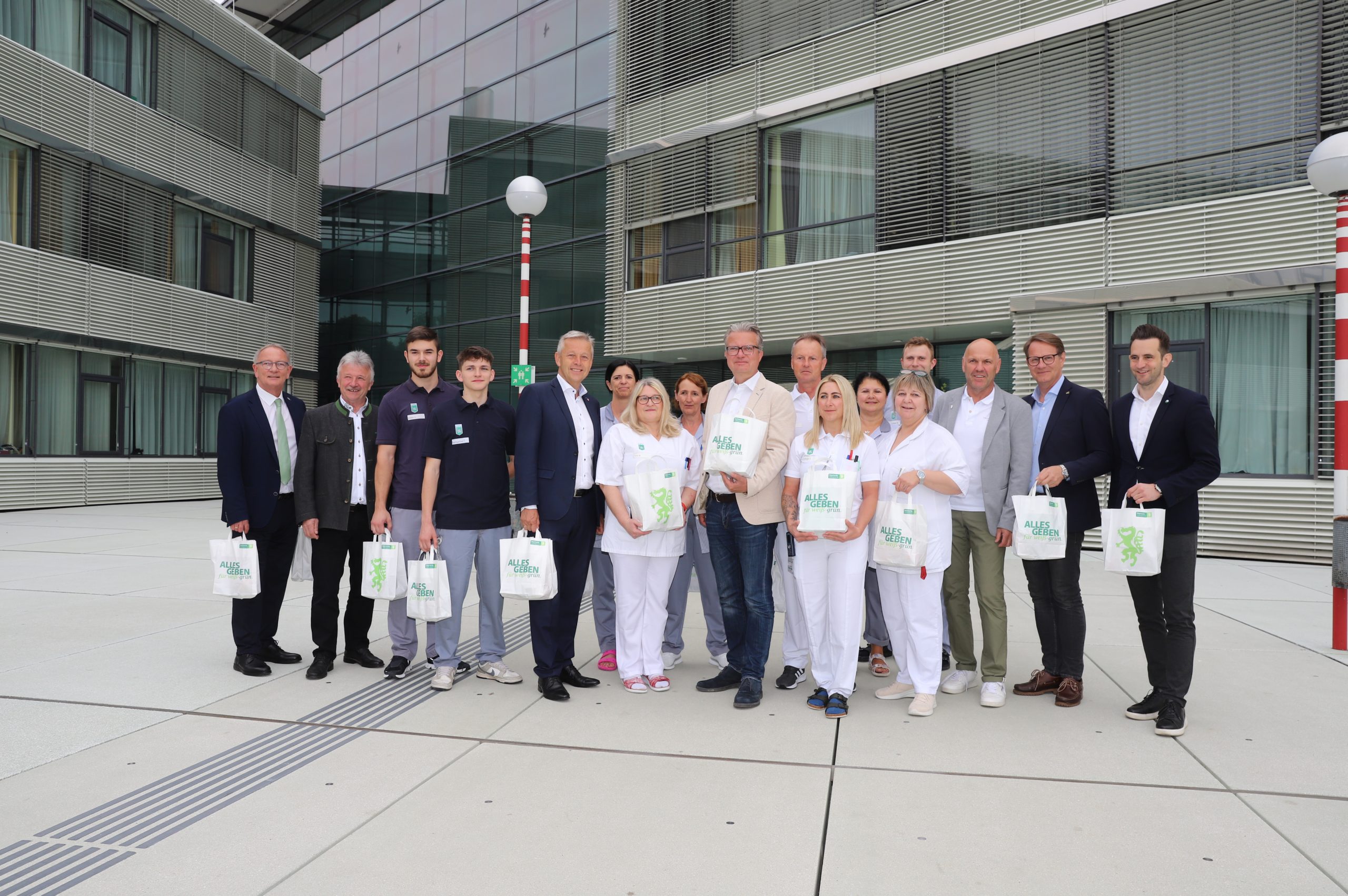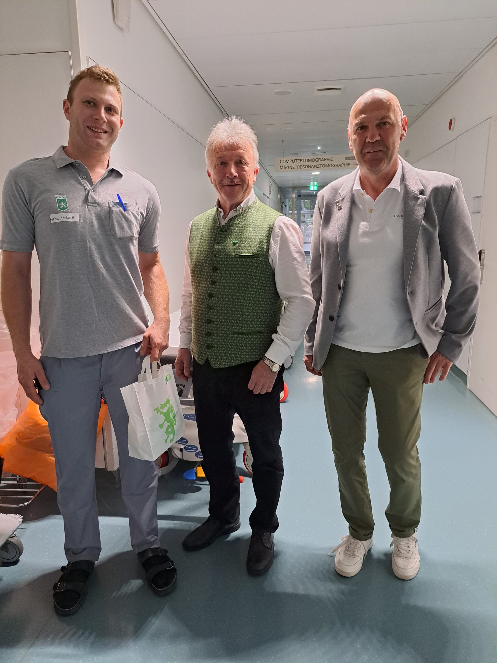 Danach stand gemeinsam mit EU-Spitzenkandidat NRAbg. Reinhold Lopatka ein Besuch beim Roten Kreuz in Hartberg am Programm. Die Bezirksstelle Hartberg versorgt etwa 67.000 Menschen und hat mehr als 500 freiwillige und berufliche Mitarbeiterinnen und Mitarbeiter. Dabei leisten die Freiwilligen jedes Jahr rund 90.000 ehrenamtliche Stunden im Dienst des Allgemeinwohls. Im Anschluss nahm eine kleine Abordnung der Mitarbeiterinnen und Mitarbeiter des LKH Hartberg stellvertretend für alle Kolleginnen und Kollegen das steirische Frühstück von Drexler und Lopatka entgegen.