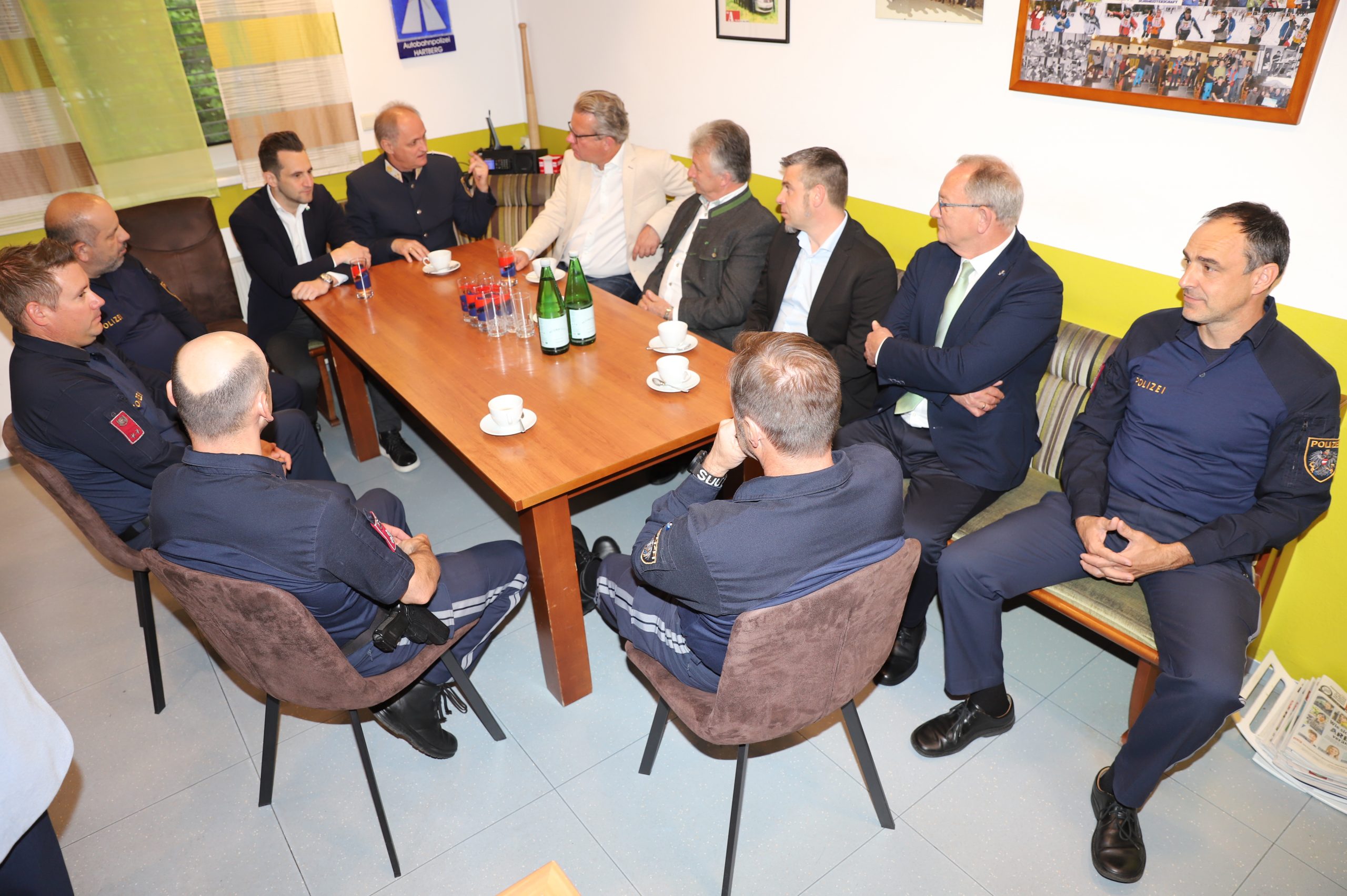 Gemeinsam mit Landesgeschäftsführer Detlev Eisel-Eiselsberg, Bezirksparteiobmann LAbg. Lukas Schnitzer, LAbg. Hubert Lang und hiesigen Mandataren stattete der Landeshauptmann dem Bezirk Hartberg-Fürstenfeld einen Besuch ab: Zuerst ging es zur Autobahnpolizei Hartberg, wo Landeshauptmann Christopher Drexler sich persönlich ein Bild vor Ort machen konnte. „Mit ihrem täglichen Einsatz leisten unsere Polizistinnen und Polizisten einen wertvollen Beitrag zur Sicherheit der Steirerinnen und Steirer. Was sie im Anlassfall leisten, welche Leistungsfähigkeit sie an den Tag legen, um ihre Mitmenschen zu schützen, wurde auch in der jüngeren Vergangenheit sehr deutlich. Umso mehr freue ich mich, heute einigen von ihnen ganz persönlich ein symbolisches ‚Dankeschön‘ vorbeibringen zu können“, so der Landeshauptmann.
