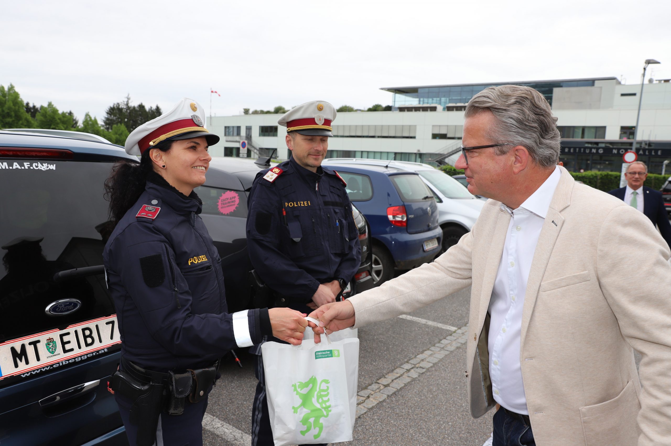 Auch in diesem Jahr gab es ein symbolisches „Dankeschön“ für diesen Einsatz und die Bereitschaft, auch am Feiertag für das Wohl der Steirerinnen und Steirer zur Verfügung zu stehen. In diesem Jahr wurde ein Frühstück verteilt, das ausschließlich aus regionalen Köstlichkeiten aus den steirischen Regionen bestand. Vom Apfel aus Puch bei Weiz über die Berglandmilch-Butter aus Voitsberg und den Aufstrich aus Stainach-Pürgg bis hin zu Hartwurst, Gebäck und Postkarte – sämtliche Produkte stammen aus der Steiermark. Indem sie auf Regionalität setzt, tut die Steirische Volkspartei nicht nur der Umwelt Gutes und stärkt die regionale Wirtschaft, sondern möchte vor allem auf die großartigen Produkte zurückgreifen, durch die die steirischen Betriebe die regionale Lebensmittelversorgung sichern.