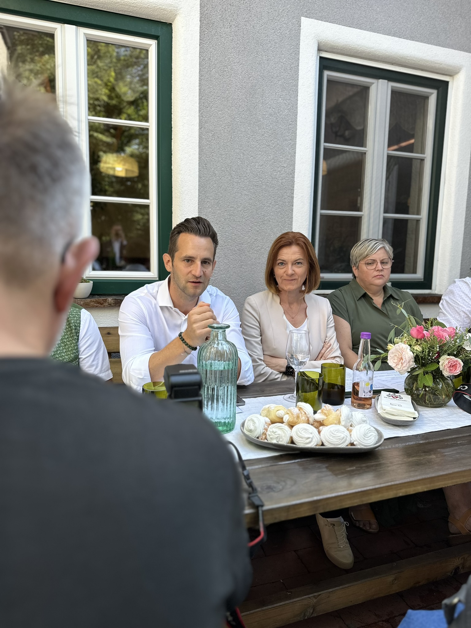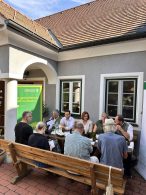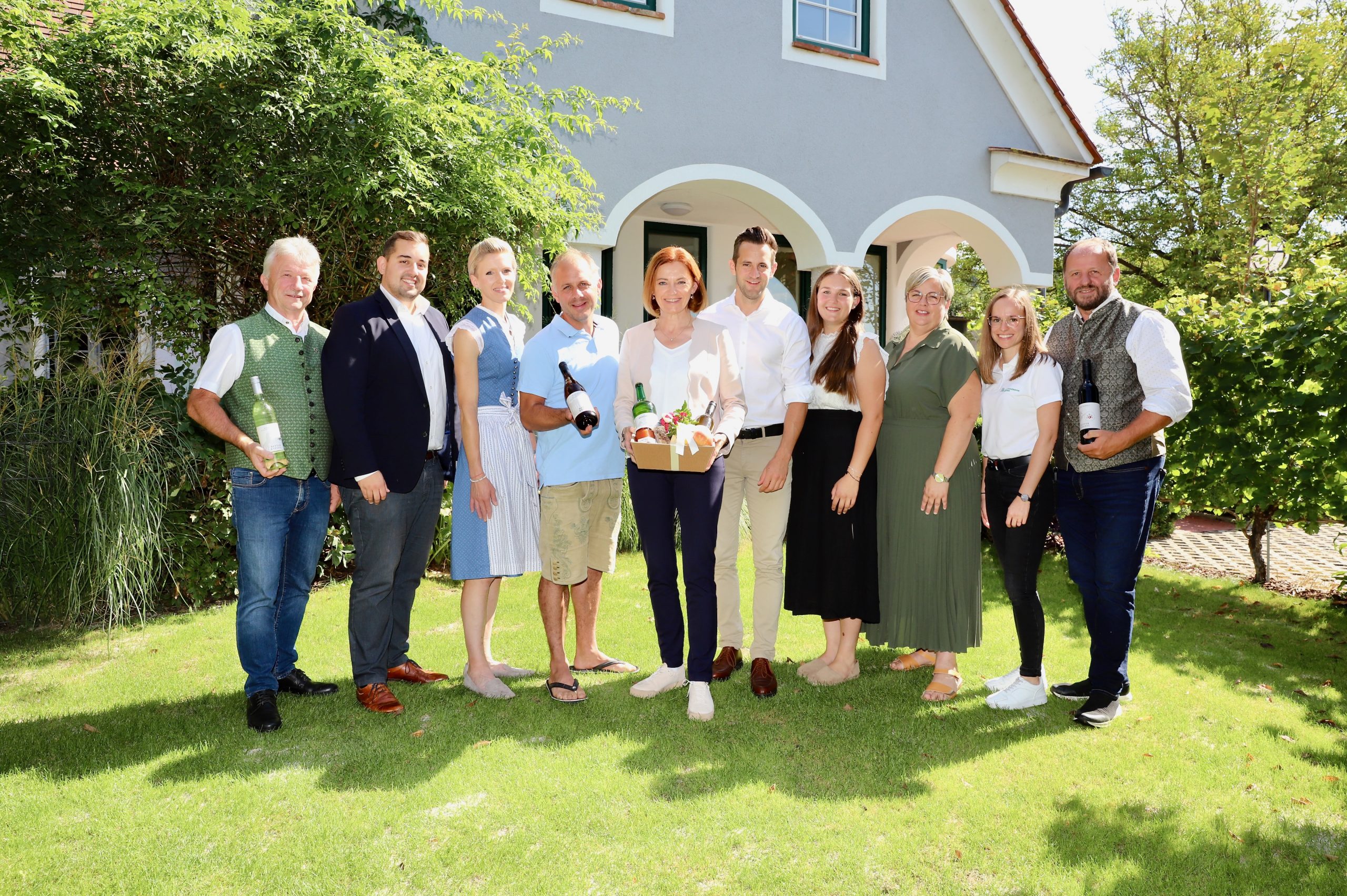 Das Weingut Retter-Kneissl in Löffelbach in der Gemeinde Hartberg Umgebung – einer der bäuerlichen Leitbetriebe in der Region – bildete den passenden Rahmen, um die Pläne, Ideen und Strategien zu präsentieren. Der Besuch von LR Schmiedtbauer wurde auch dazu genutzt, Lea Kneissl, Nichte von Wolfgang und Christina Kneissl, zu ihrer Wahl zur steirischen Weinhoheit zu gratulieren; der Kneissl-Nachwuchs, Franz-Xaver und Klara, überraschte die Landesrätin mit einem Traubensaft mit selbst gestalteten Etiketten.