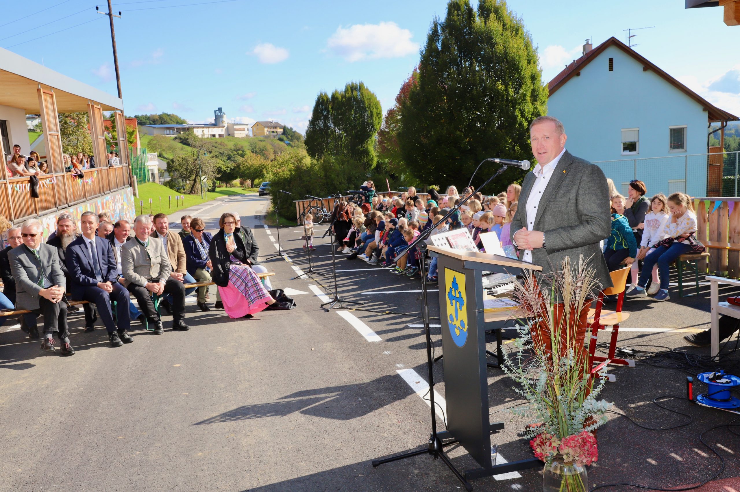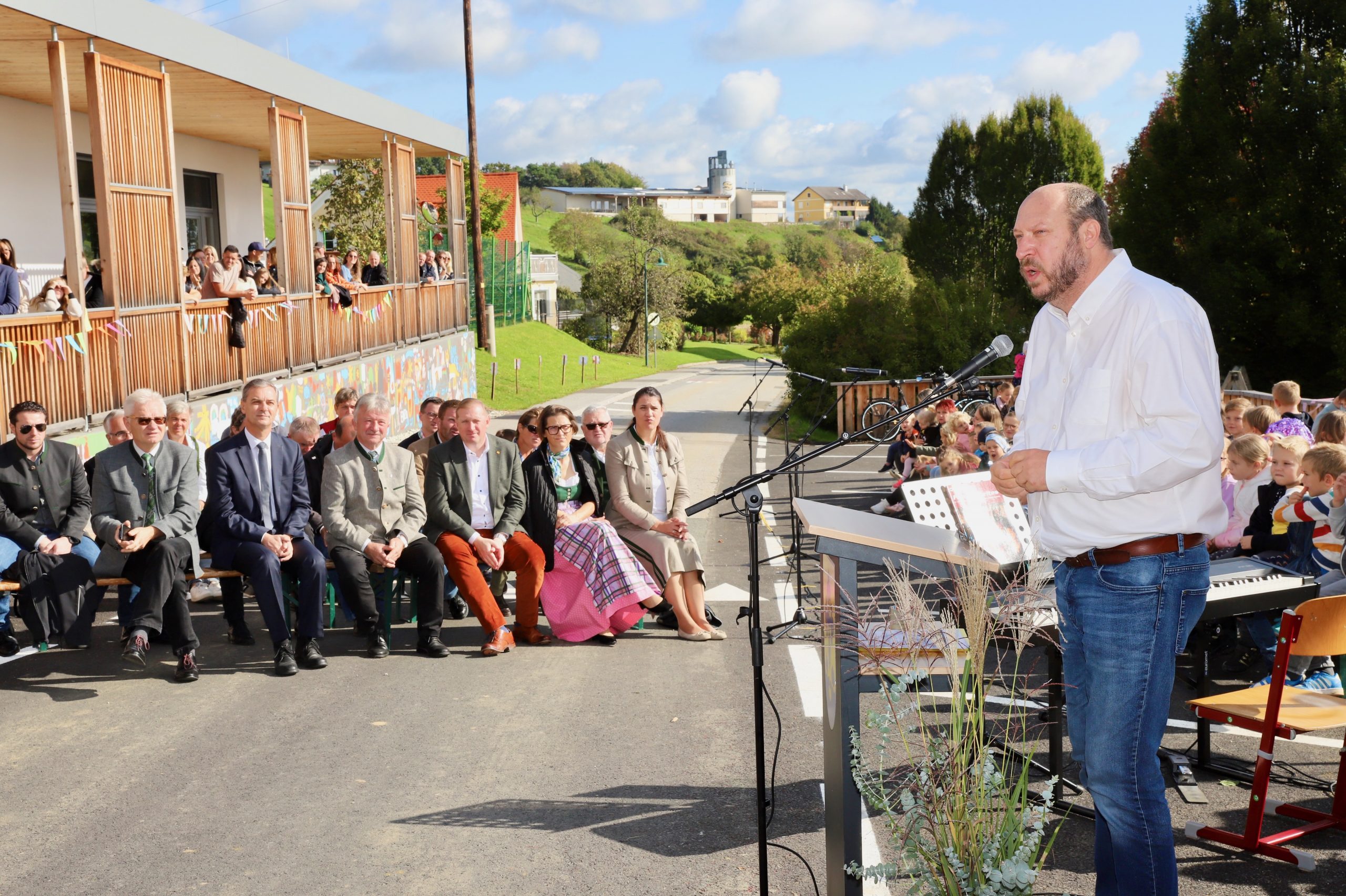 Sämtliche Grußredner betonten den hohen Stellenwert von zeitgemäßer Kinderbetreuung. „Bei den Jüngsten wird die Basis für eine erfolgreiche Zukunft gelegt“, so LAbg. Hubert Lang. Gesegnet wurden der Kindergarten und die Kinderkrippe sowie ein neu errichteter Spielplatz vom Kaindorfer Seelsorger Michael Kopp. Die Kindergartenkinder dankten auf ihre Weise, mit mehreren Liedern, die den Festakt umrahmten.