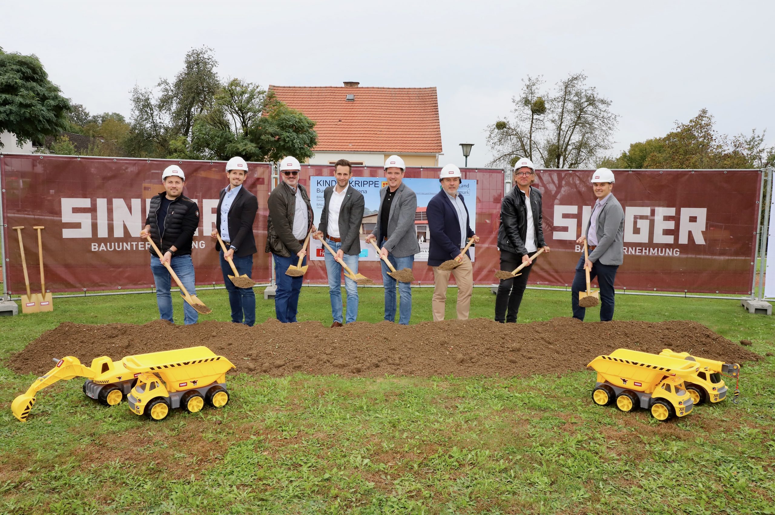 Während einer Bauzeit von knapp einem Jahr wird ein bestehendes Wohnhaus umgebaut, in einem direkt angeschlossenen, eingeschossigen Zubau werden die zwei Krippengruppen Platz finden. Ziel von Architekt Keler war es, mittels einfacher, klarer und funktioneller Architektur ein buntes und „fröhliches“ Haus für die Kinder zu schaffen. Die Nettogesamtkosten betragen rund 1.560.000 Euro und werden vom zuständigen Gemeindereferenten LH Christopher Drexler großzügig gefördert.