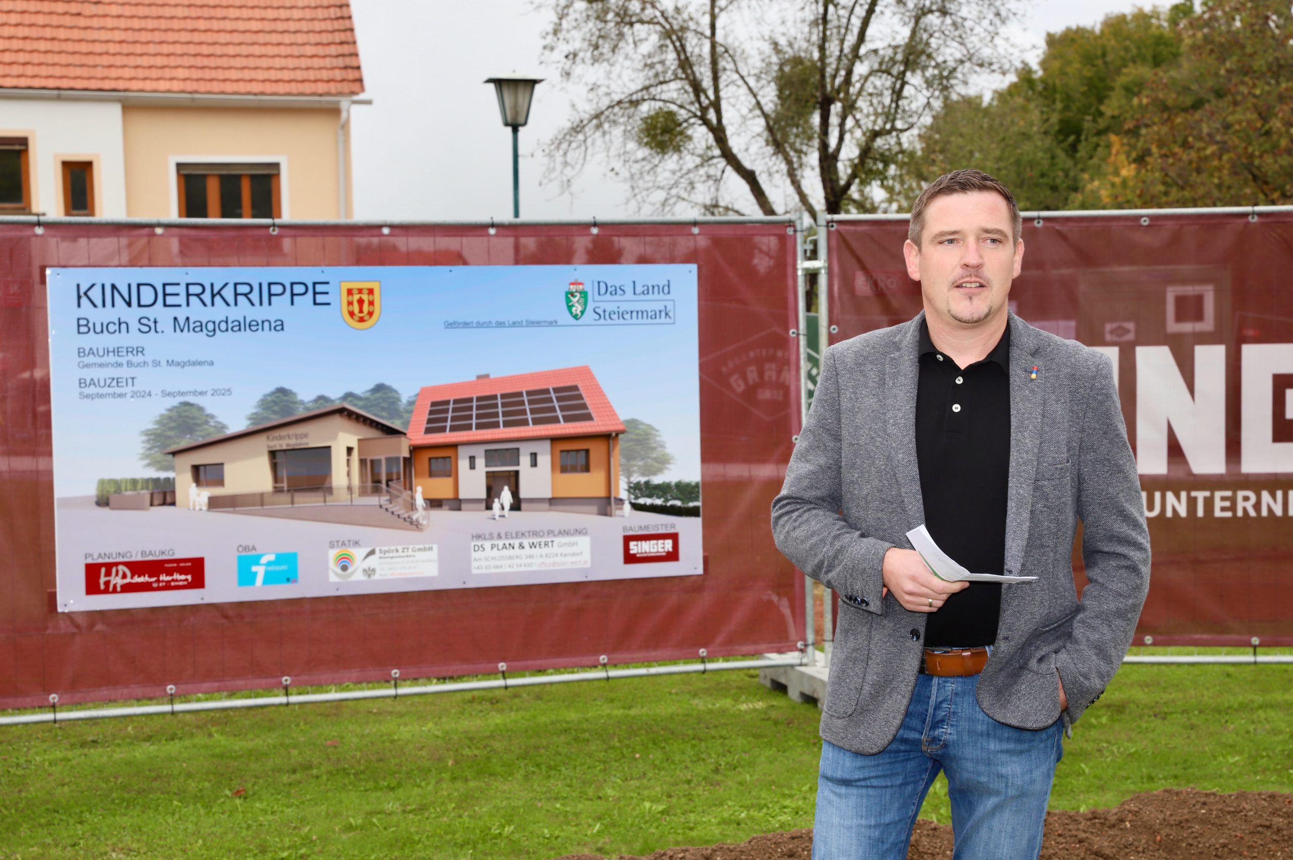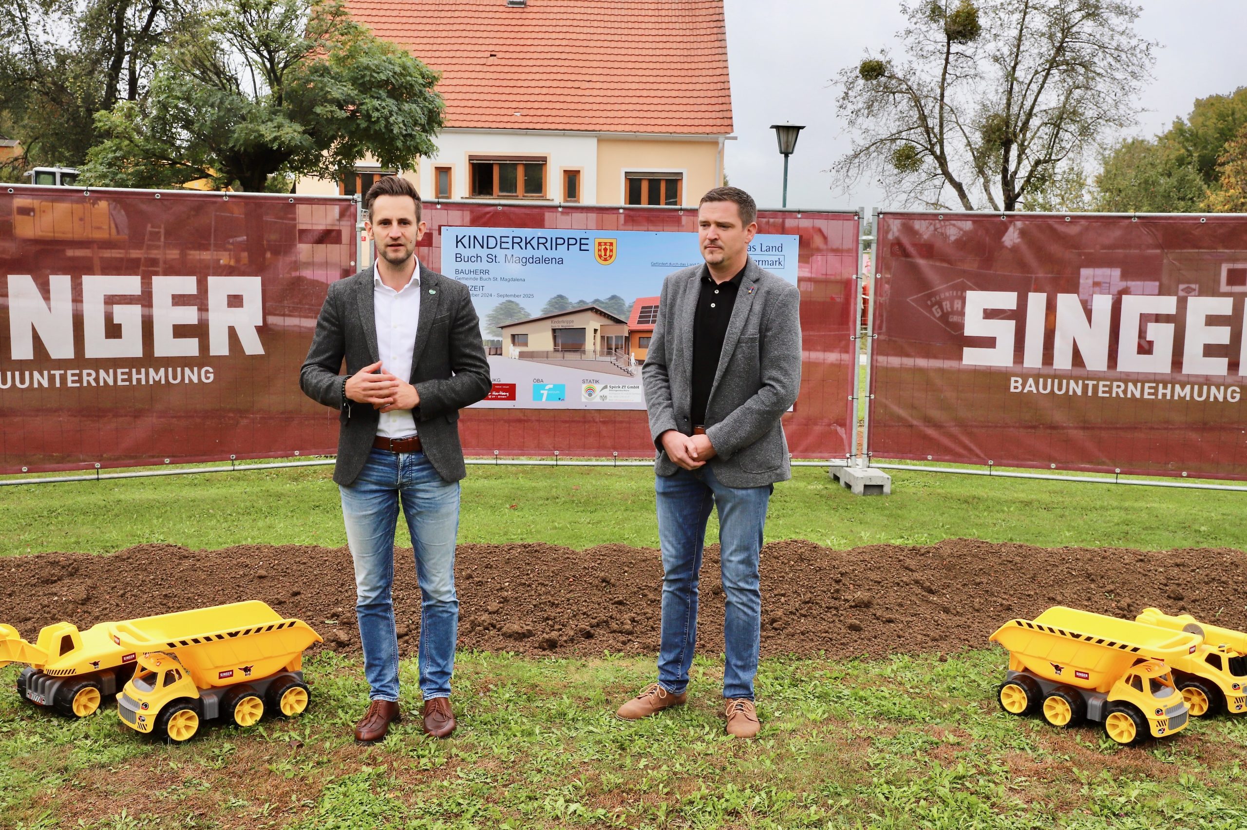 In der Gemeinde Buch-St. Magdalena wird eine zweigruppige Kinderkrippe errichtet. Die Baukosten betragen knapp 1,6 Millionen Euro und werden vom Land Steiermark (Ressort LH Drexler) großzügig gefördert.
