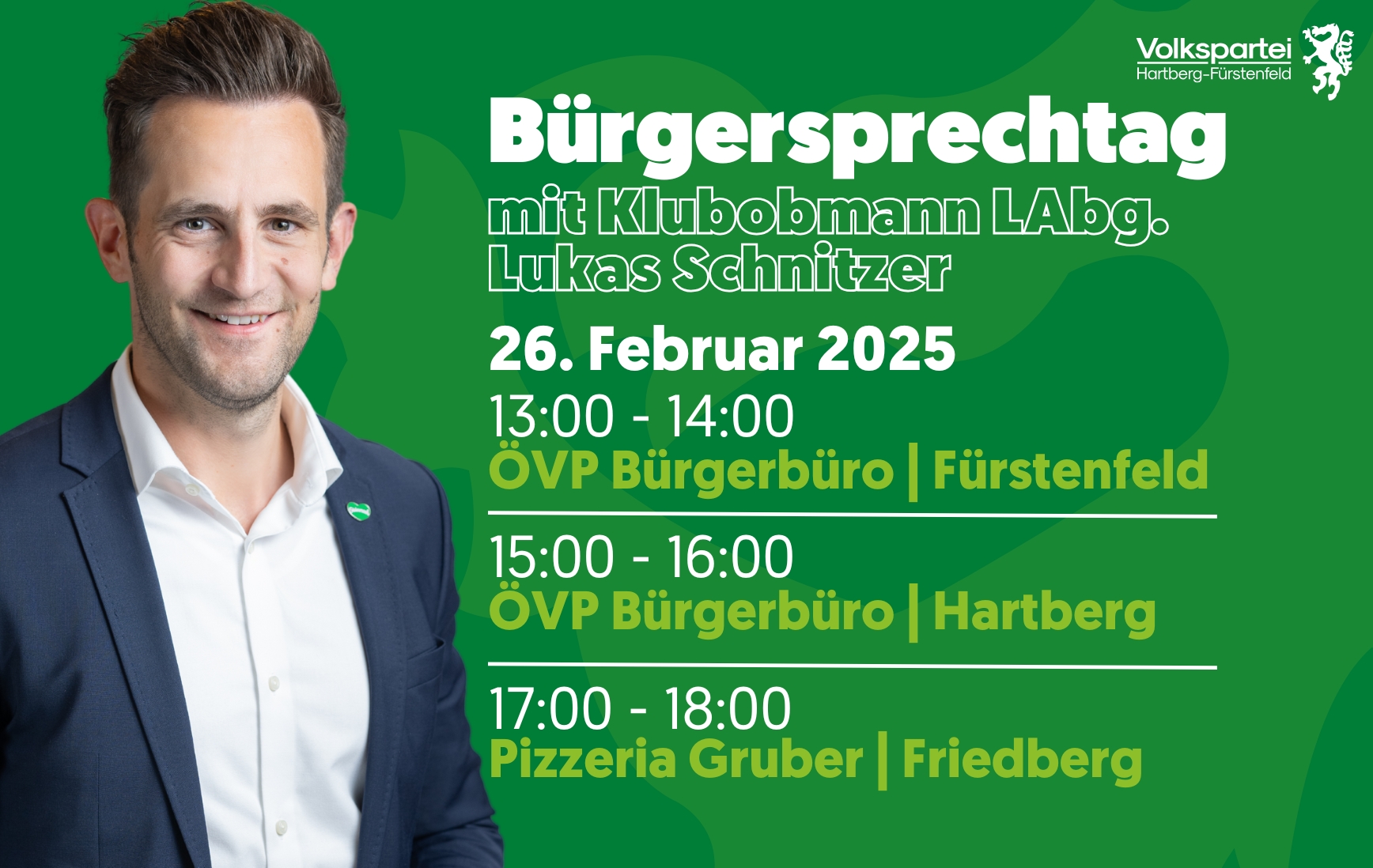 Klubobmann Landtagsabgeordneter Lukas Schnitzer lädt zum Bürgersprechtag.